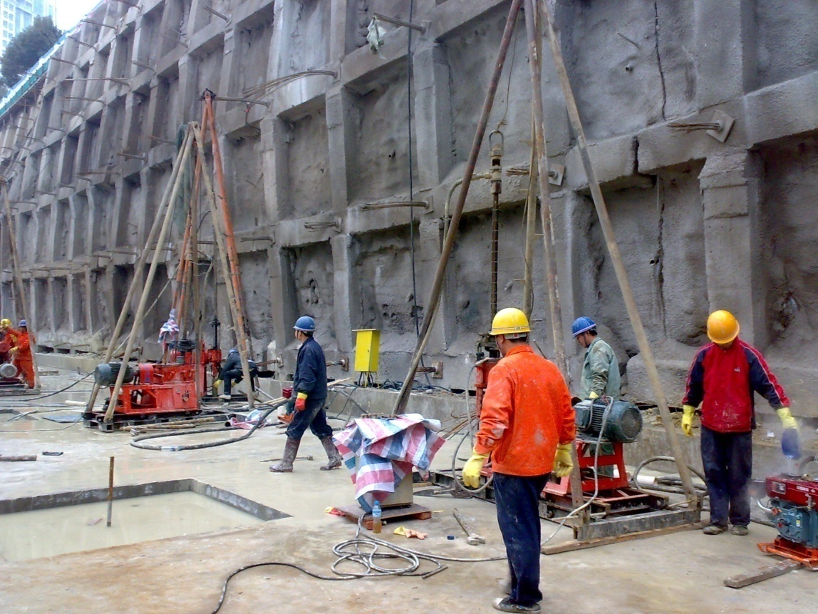 武漢東湖廣場地下室抗浮錨桿工程