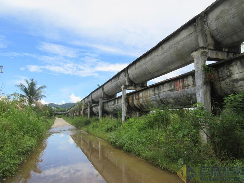項(xiàng)目概況:三亞赤田水庫(kù)灌溉渡槽建成于1995年,經(jīng)過(guò)二十余年使用,目前渡槽槽身及支架存在鋼筋銹脹、鋼筋外露銹蝕、混凝土開(kāi)裂、破損、滲漏等外觀質(zhì)量缺陷現(xiàn)象,現(xiàn)業(yè)主方擬對(duì)該渡槽進(jìn)行修復(fù)加固處理。