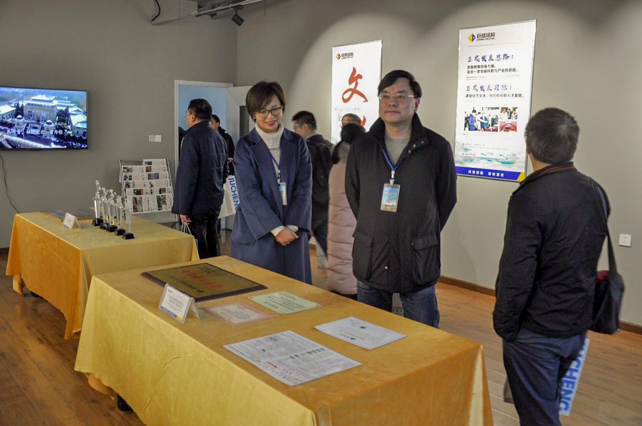 參會嘉賓在武大巨成董事長兼總經(jīng)理高作平、董事陳明祥、盧亦焱,董事、副總經(jīng)理萬雄衛(wèi)、常務(wù)副總經(jīng)理閔啟武、副總經(jīng)理張黎明的陪同下,參觀了公司的五個(gè)展廳,通過展廳和宣傳片的展示和產(chǎn)品介紹,嘉賓們對巨成的企業(yè)發(fā)展歷程、文化與綜合實(shí)力、科技發(fā)展有了更新的認(rèn)識。