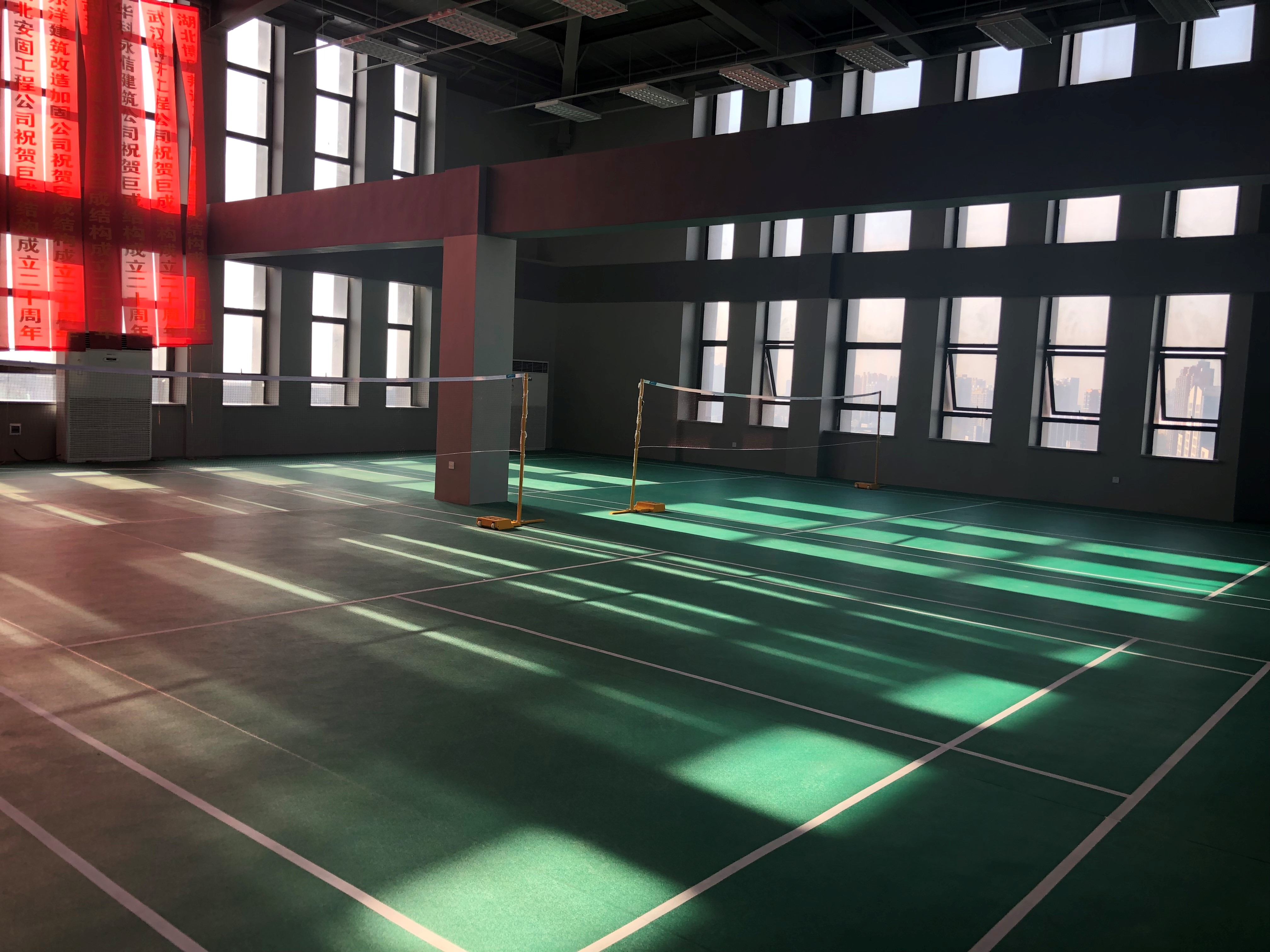18層設(shè)置了羽毛球館、乒乓球場(chǎng)地、跑步機(jī)、動(dòng)感單車(chē)、仰臥起坐板、臺(tái)球區(qū)等眾多健身項(xiàng)目,羽毛球館,地面采用專業(yè)的塑膠地面,具有防滑和緩沖作用,充分的保護(hù)員工的腳踝和膝蓋。