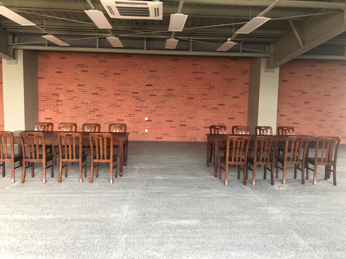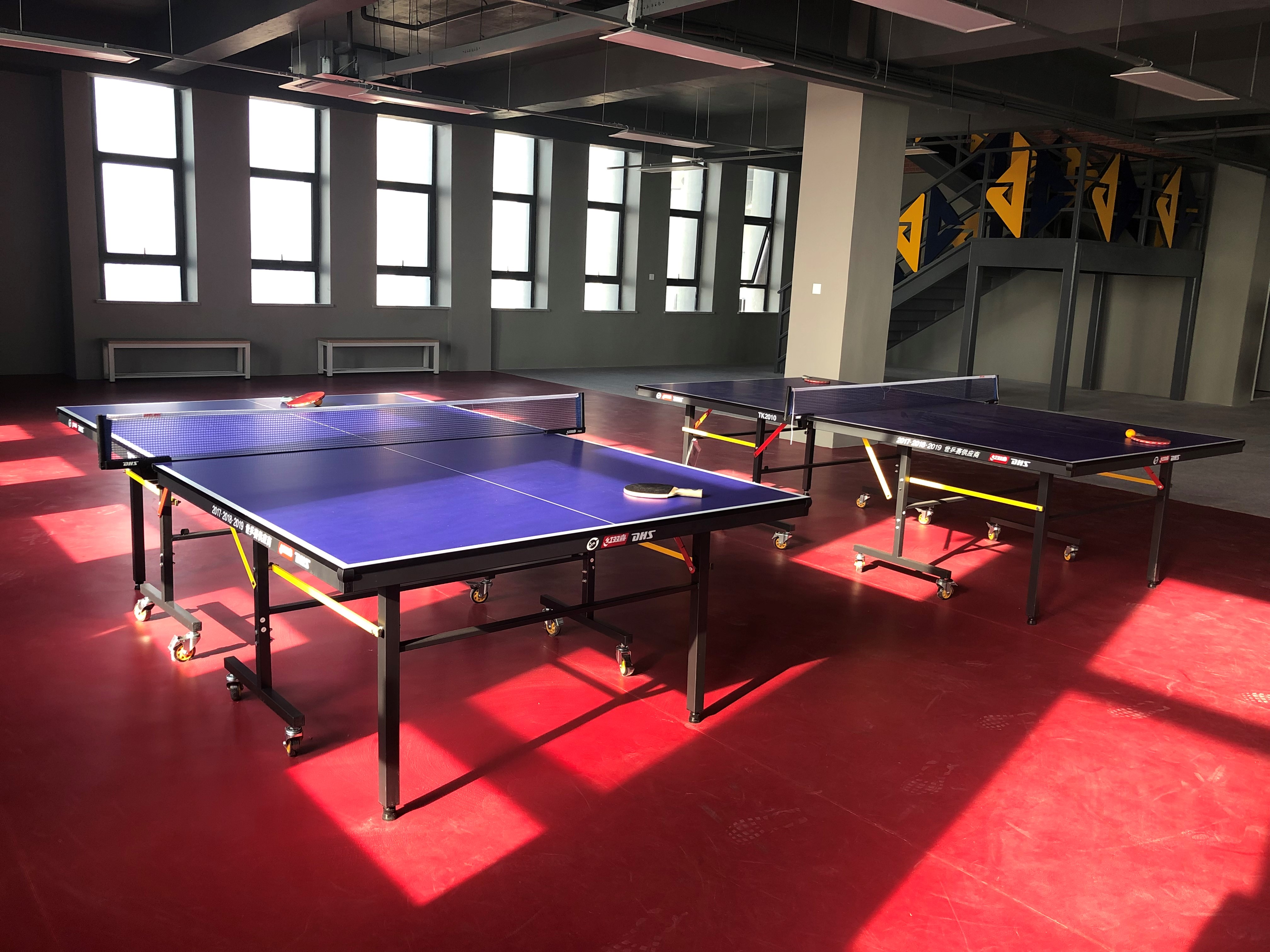 乒乓球場(chǎng)地設(shè)置合理,配置2套專業(yè)比賽乒乓球設(shè)施,采光良好,地面采用專業(yè)乒乓球塑膠地面,具有防滑和緩沖作用,充分的保護(hù)員工的腳踝和膝蓋,為不影響員工視線,場(chǎng)地設(shè)置為紅色。