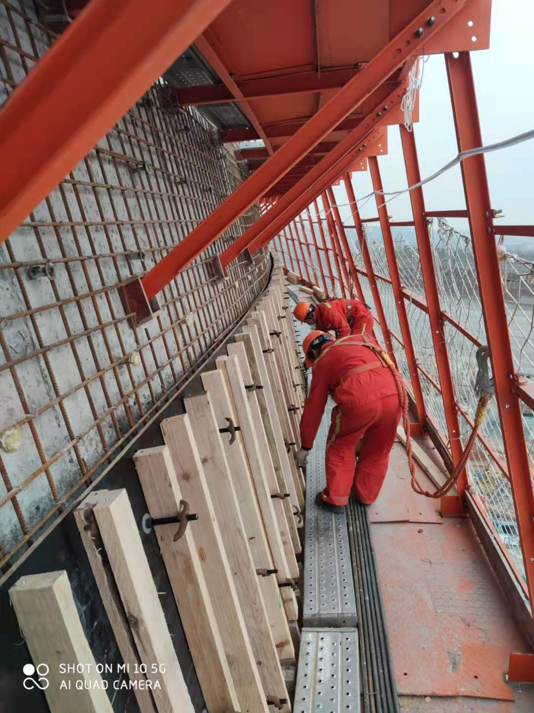 有一次澆筑混凝土,班長張漢坤帶領(lǐng)班組人員奮戰(zhàn)至凌晨2點。雖然寒風(fēng)呼呼地吹,大家又累又困,但是張班長以身作則,全體人員毫無怨言,直至順利澆筑完成。工人鄭武雄憑借過硬、全面的操作技能和良好的安全意識,在鋼平臺搭設(shè)方面表現(xiàn)優(yōu)異。不論是操作登高車,還是在70多米的高空搭設(shè)鋼平臺,鄭武雄始終沖在最前線,保質(zhì)保量保安全地完成每一項任務(wù),展現(xiàn)了一名合格施工人員的良好素質(zhì)。