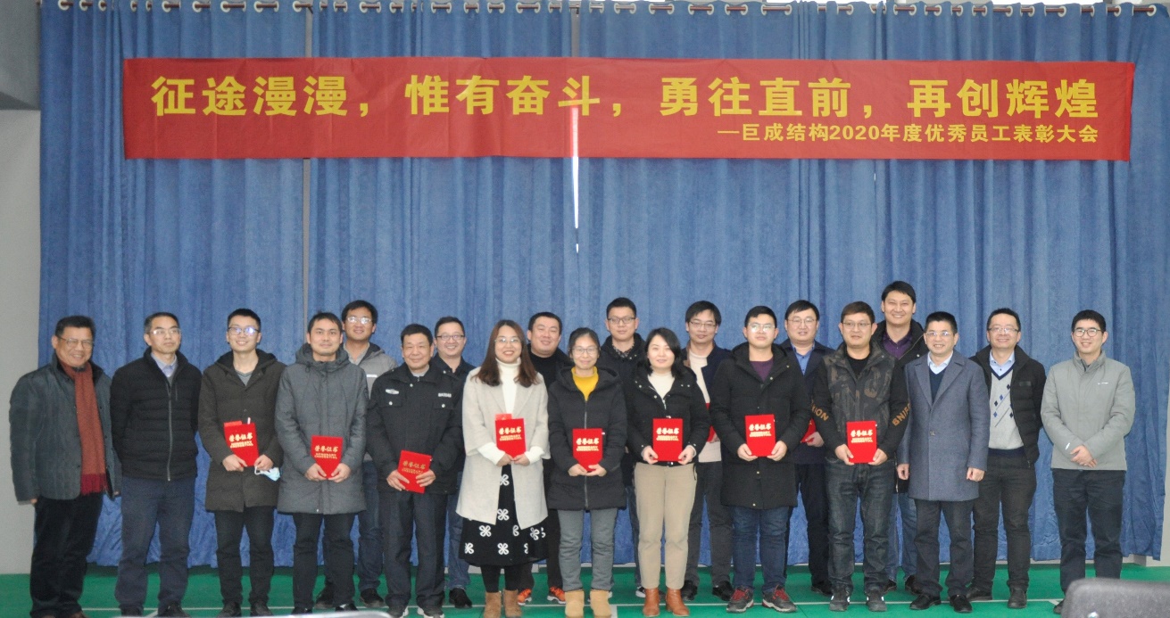 不平凡的2020年已經(jīng)過去,巨成結(jié)構(gòu)全體干部員工在公司董事會(huì)、經(jīng)理層的正確指導(dǎo)下,凝心聚力,團(tuán)結(jié)拼搏,取得可喜的成績(jī),成績(jī)的背后包含著所有巨成人攜手共進(jìn)的辛勤汗水。2月3日下午,公司隆重召開2020年優(yōu)秀員工表彰大會(huì)對(duì)在2020年度工作中做出重大貢獻(xiàn)的優(yōu)秀員工進(jìn)行表彰,激勵(lì)全體員工向先進(jìn)典型學(xué)習(xí),團(tuán)結(jié)奉獻(xiàn)、開拓進(jìn)取。公司董事陳明祥,董事、總經(jīng)理萬(wàn)雄衛(wèi),副總經(jīng)理張暢、廖杰洪,監(jiān)事會(huì)主席閔啟武參加會(huì)議。