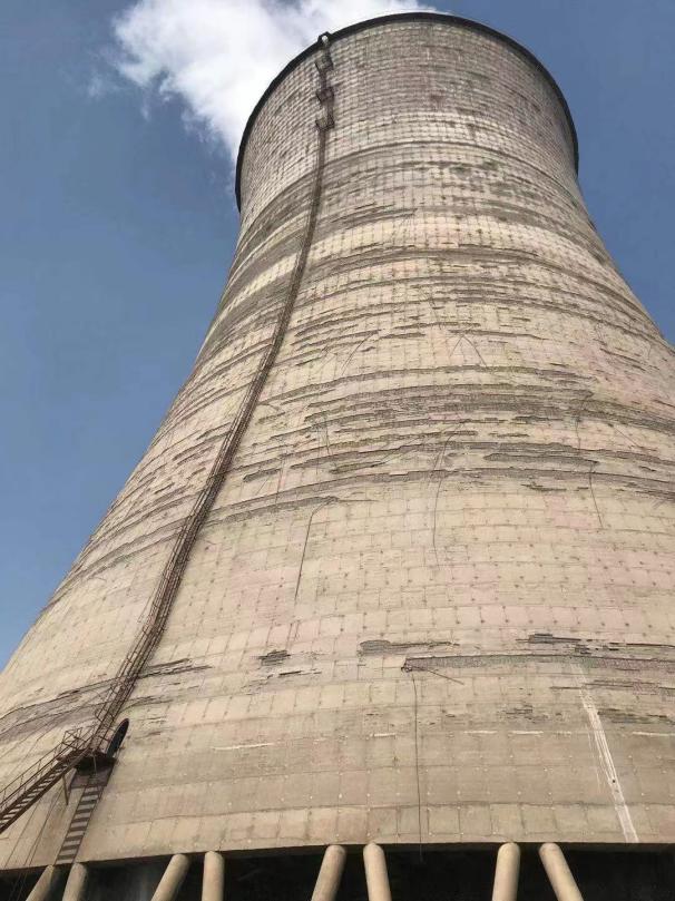 山東天源熱電有限公司三電廠2#冷卻塔,隸屬世界五百?gòu)?qiáng)印尼“金光集團(tuán)”。項(xiàng)目位于山東淄博,2011年投入使用,淋水面積5500㎡,總高度為115.00m。加固改造前因結(jié)構(gòu)嚴(yán)重破損,被當(dāng)?shù)亟ㄔO(shè)管理部門責(zé)令立即處理。考慮到重建投資高,程序復(fù)雜,業(yè)主決定加固改造。為高質(zhì)量完成改造任務(wù),業(yè)主面向業(yè)內(nèi)的全國(guó)優(yōu)秀企業(yè)進(jìn)行招標(biāo)。巨成憑借豐富的經(jīng)驗(yàn)業(yè)績(jī)、突出的技術(shù)方案、嚴(yán)密的施工組織、科學(xué)的安全保障拔得頭籌。