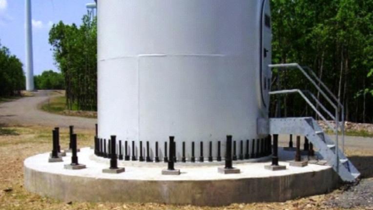 該?場發(fā)電機組共33臺,裝機總?cè)萘?9.5MW。?機基礎(chǔ)采?P&H巖?錨桿?機基礎(chǔ)技術(shù)。項?于2013年12?30?投產(chǎn)發(fā)電,運?過程中發(fā)現(xiàn)部分?機基礎(chǔ)原設(shè)計的18根50mm巖?預(yù)應(yīng)?錨桿出現(xiàn)數(shù)量不等的斷裂情況,經(jīng)專家論證,原錨桿斷裂主要是疲勞荷載導(dǎo)致。