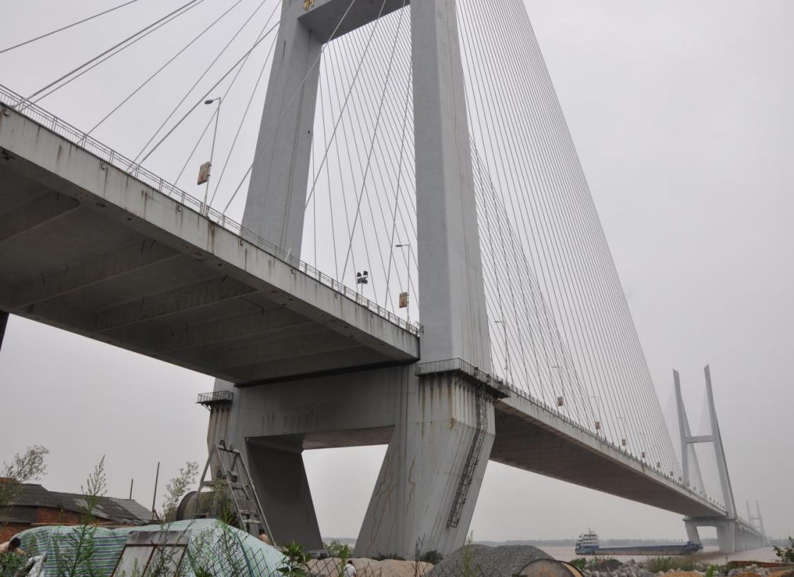 本工程于2007年施工。荊州長江公路大橋1998年3月開建,2002年10月通車,雙塔斜拉橋,主橋段長4178米。經(jīng)過多年運行出現(xiàn)一些病害,巨成2017年承接橋梁維護工程,主要施工內(nèi)容為裂縫處理、支座更換、缺陷修補等。應(yīng)用巨成不封道橋梁檢修架車,不影響交通的情況下完成施工任務(wù),社會經(jīng)濟價值顯著。